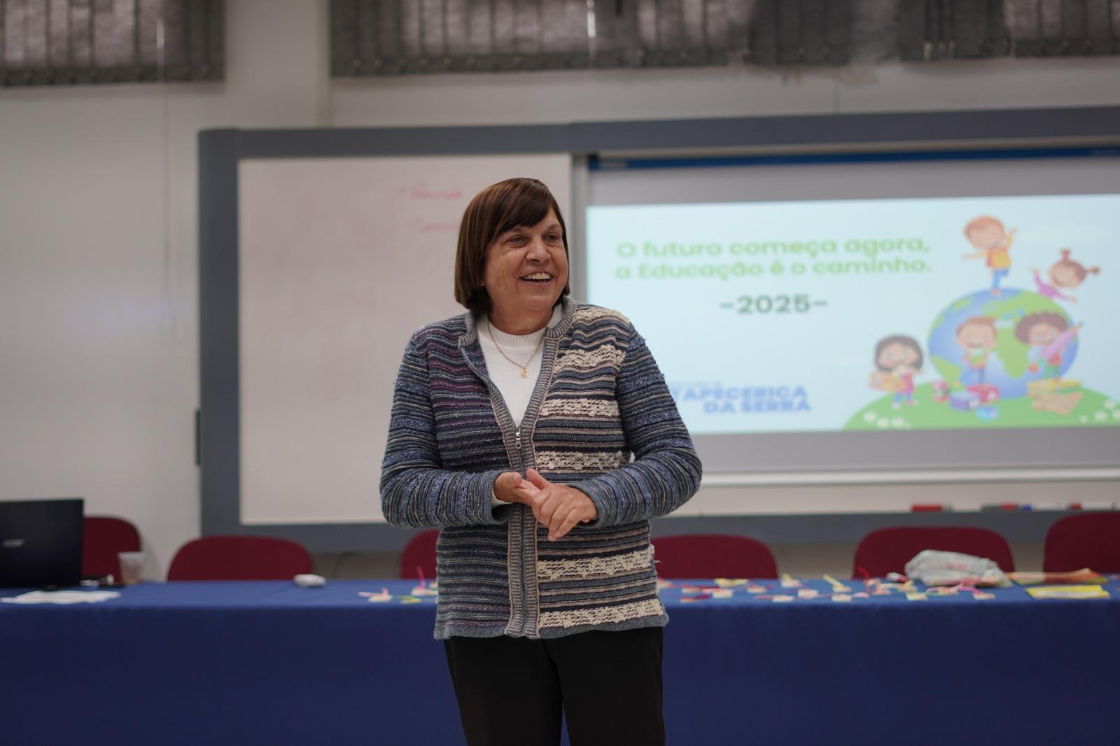 A secretária de Educação, Irani Roschel, também esteve presente acompanhando de perto as atividades e reforçando a importância do tema para a gestão escolar e a melhoria dos processos de ensino e aprendizagem na Rede Municipal.