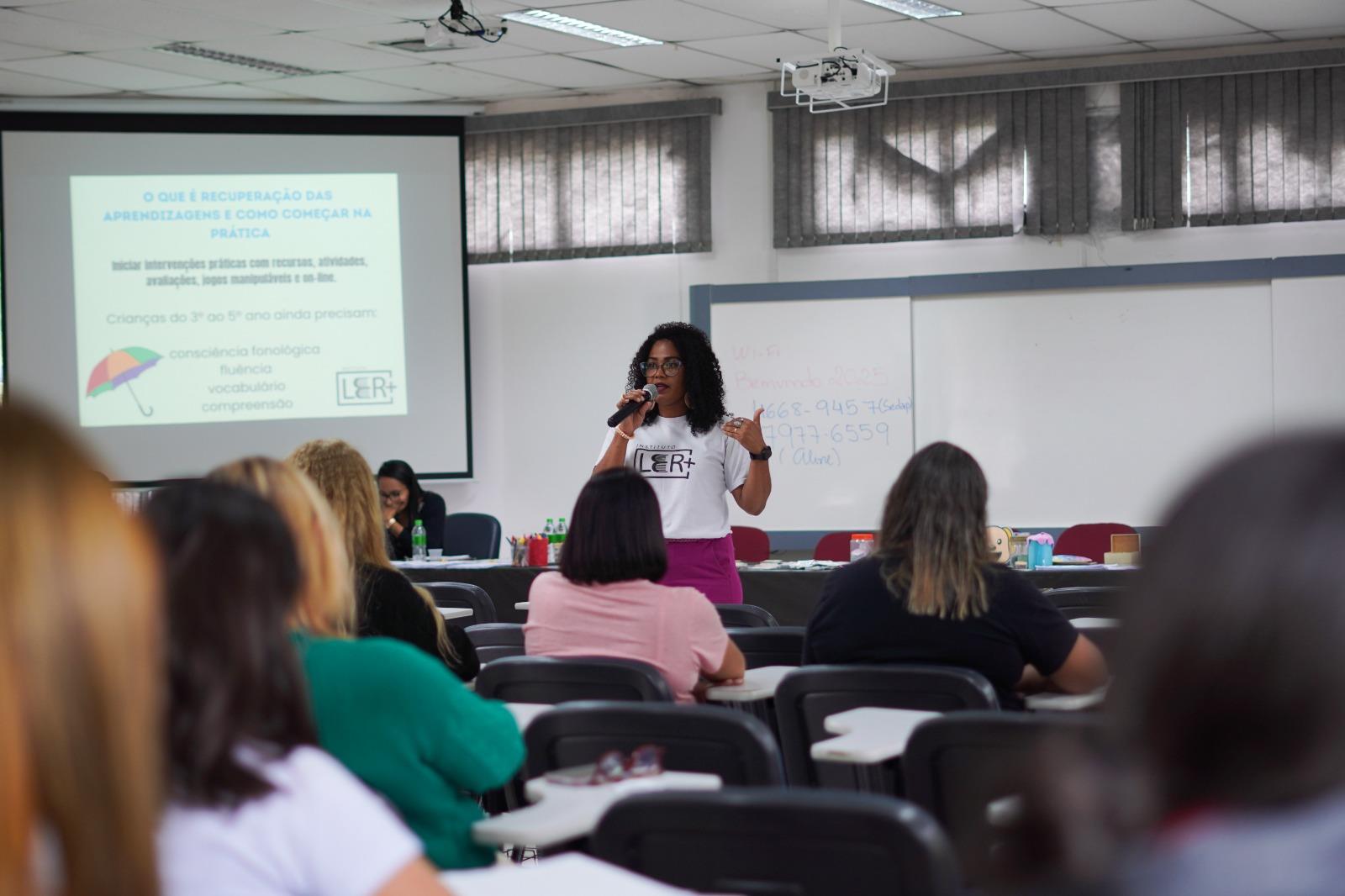 A iniciativa foi organizada em duas etapas e direcionada especialmente ao trabalho com estudantes do 3º, 4º e 5º ano que enfrentam desafios na aprendizagem. Já para os docentes do 1º e 2º ano, o encontro teve foco no desenvolvimento da Consciência Fonêmica, etapa fundamental para a consolidação da alfabetização. Durante as atividades, os participantes conheceram diferentes propostas pedagógicas e metodologias voltadas ao fortalecimento da leitura e ao ensino sistematizado da escrita, baseadas em evidências científicas.