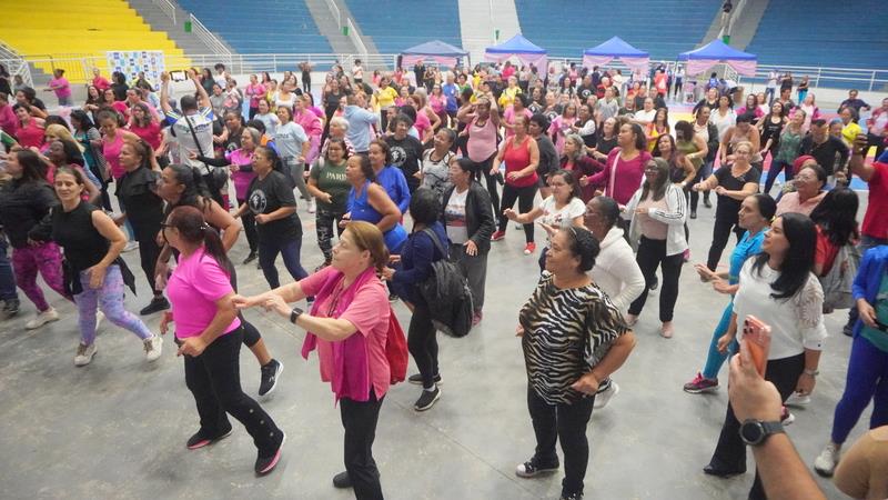 A manhã começou com uma abertura oficial, seguida de um aulão de alongamento e aquecimento conduzido pelos professores Jhow e Michelle, preparando o corpo para as atividades do dia. Em seguida, o público conferiu apresentações de diferentes ritmos, como Zumba, Ritmos, Afro Mix, FitDance e Hit Box, com performances de diversos professores locais que animaram o ginásio e estimularam a participação de todos.