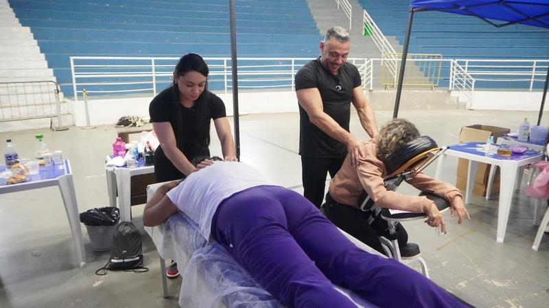 Paralelamente, o evento contou com tendas de cuidados pessoais, oferecendo serviços de skincare, massagens e escalda-pé, atendidos por profissionais qualificados. Houve ainda demonstrações de Karatê Terapêutico e Pilates, destacando a importância do movimento físico para a saúde e qualidade de vida.