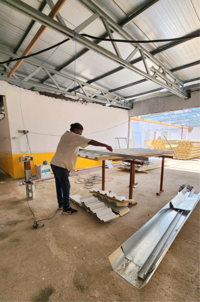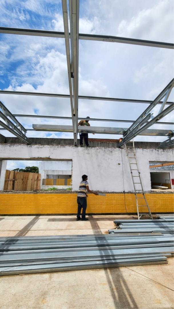 A Creche Paineiras está recebendo a implantação do telhado e acabamento interno, enquanto a Escola Francisco Jebermi segue em ritmo acelerado já na fase final da obra, com a instalação da parte elétrica e pintura de toda a unidade.