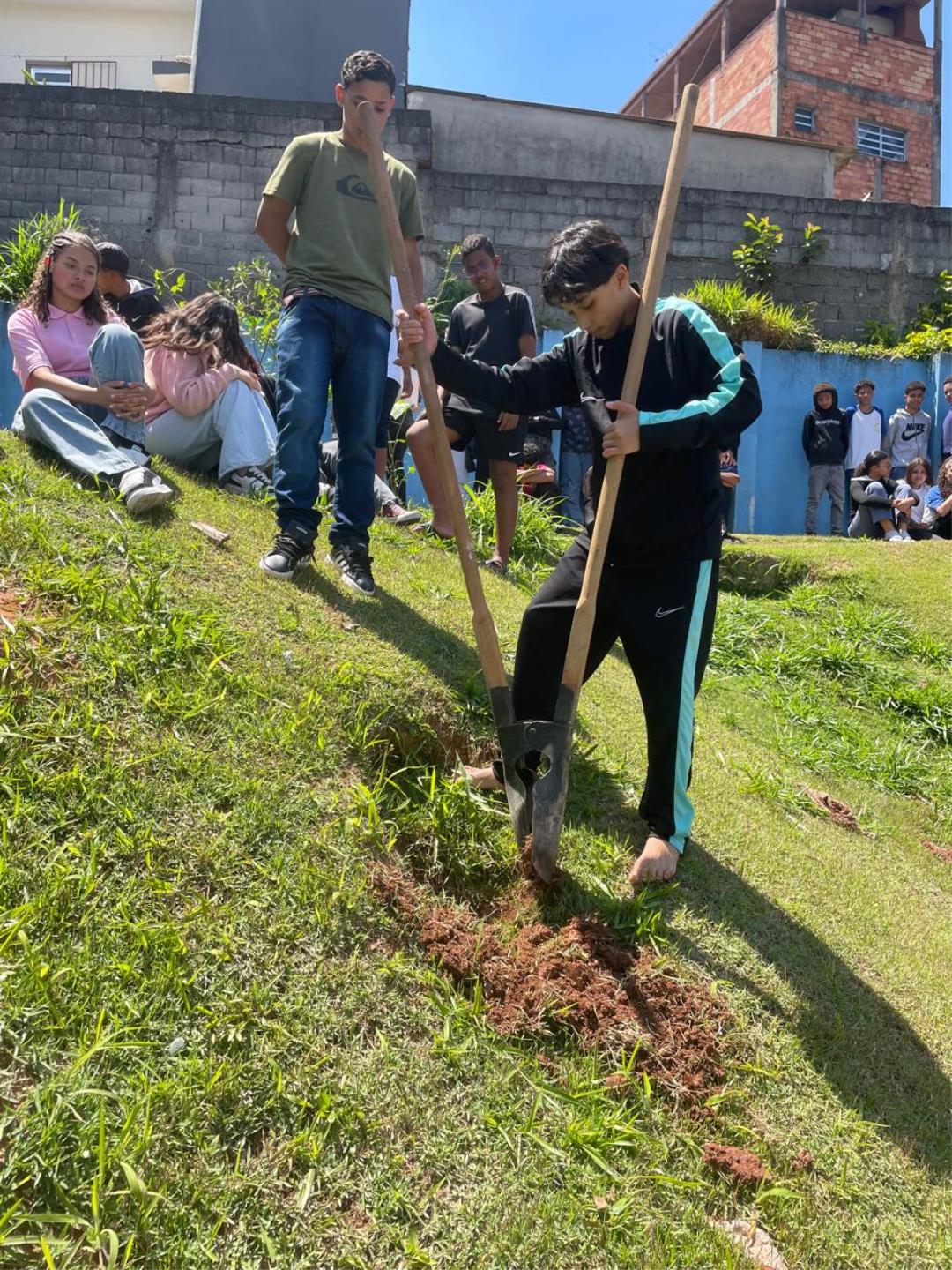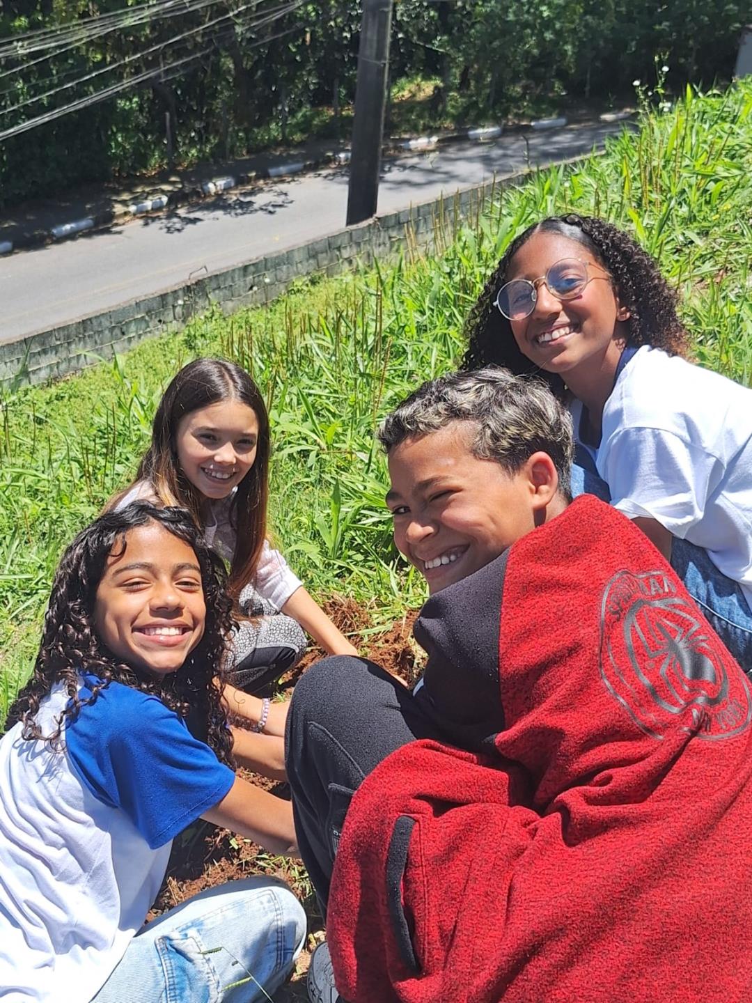 Após a conversa, os estudantes colocaram a mão na terra e participaram ativamente do plantio das mudas, simbolizando o compromisso coletivo com um futuro mais sustentável.